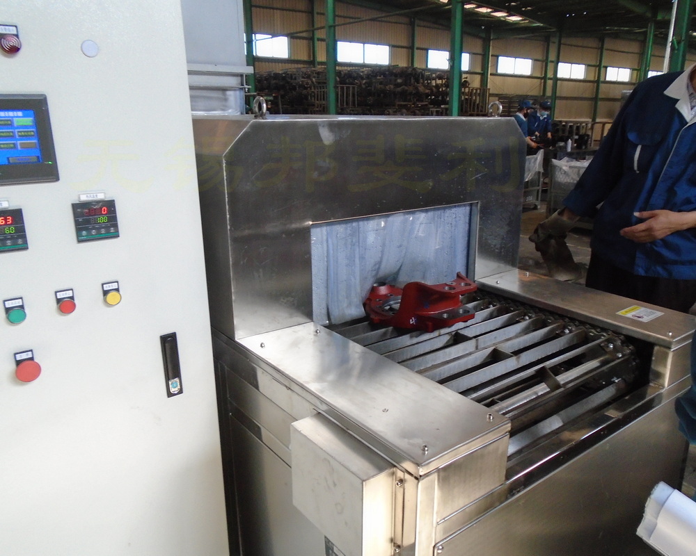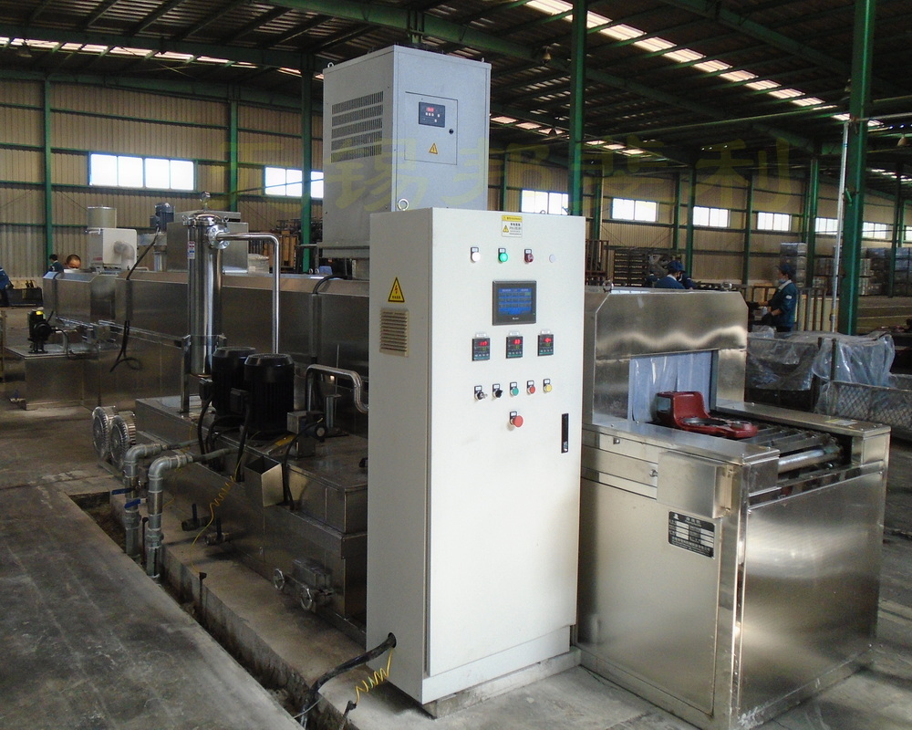 制动底板清洗机,是一种采用板链传动输送工件,具有清洗液喷淋清洗、防锈液喷淋漂洗、高压风泵切水、热风吹干、喷淋防锈油、自然风冷却等功能的新颖连续式清洗设备。主要适用于各类机械加工厂、铸造厂的各类机加工零件的清洗加工。